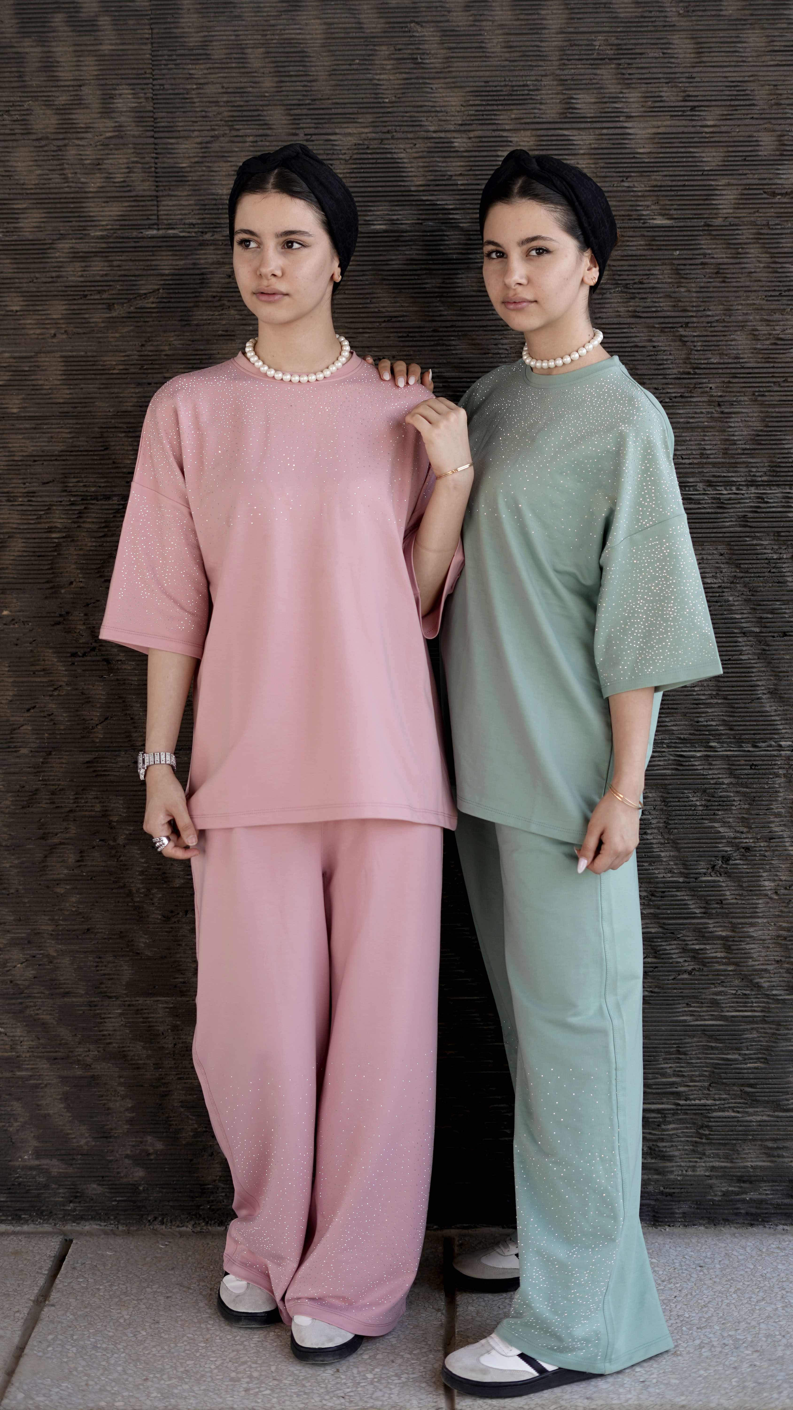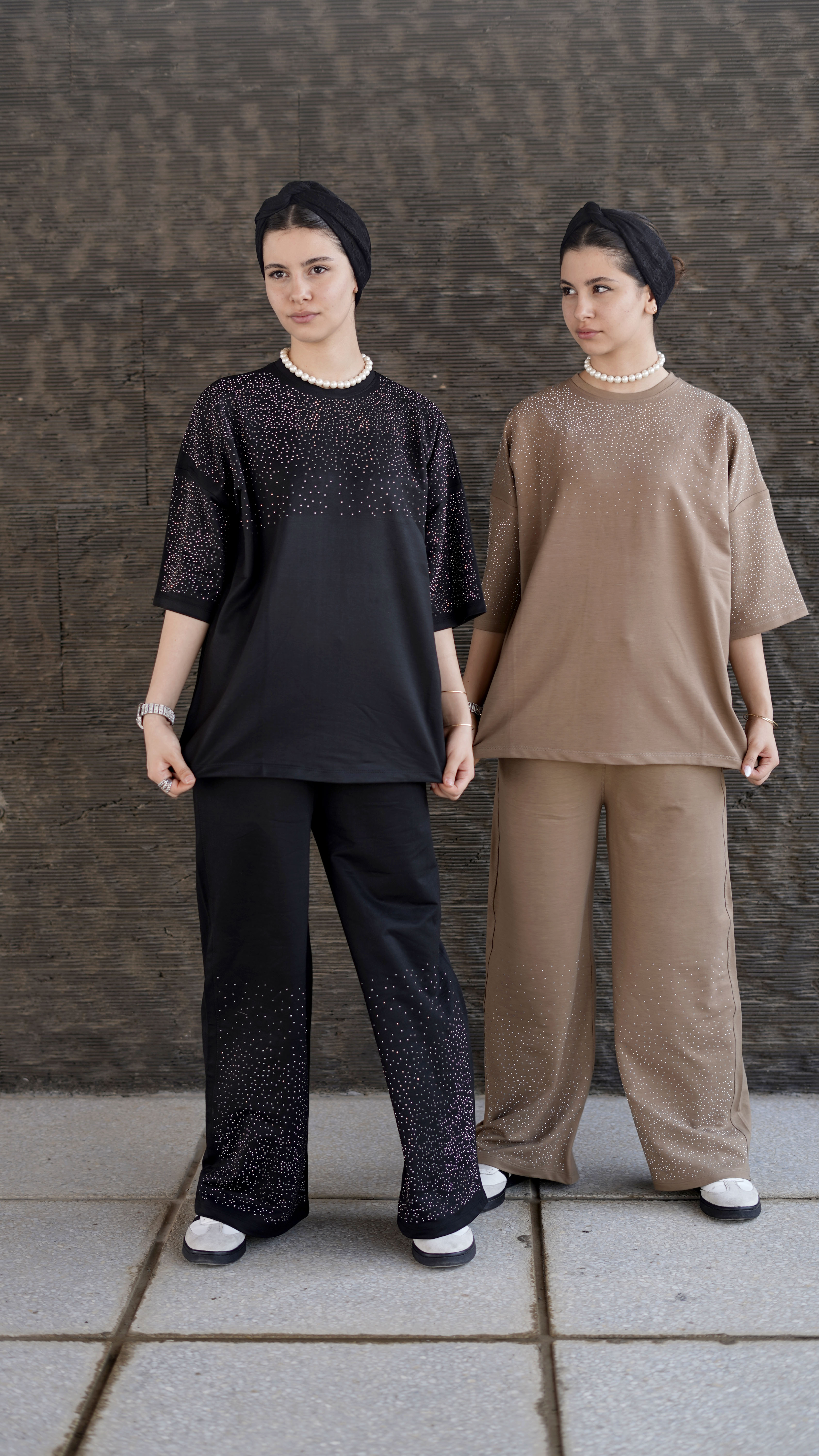این ست شامل تیشرت نیمهاورسایز و شلوار آزاد است که در کنار هم راحتی و شیک بودن را به طور همزمان برایتان به ارمغان میآورند.