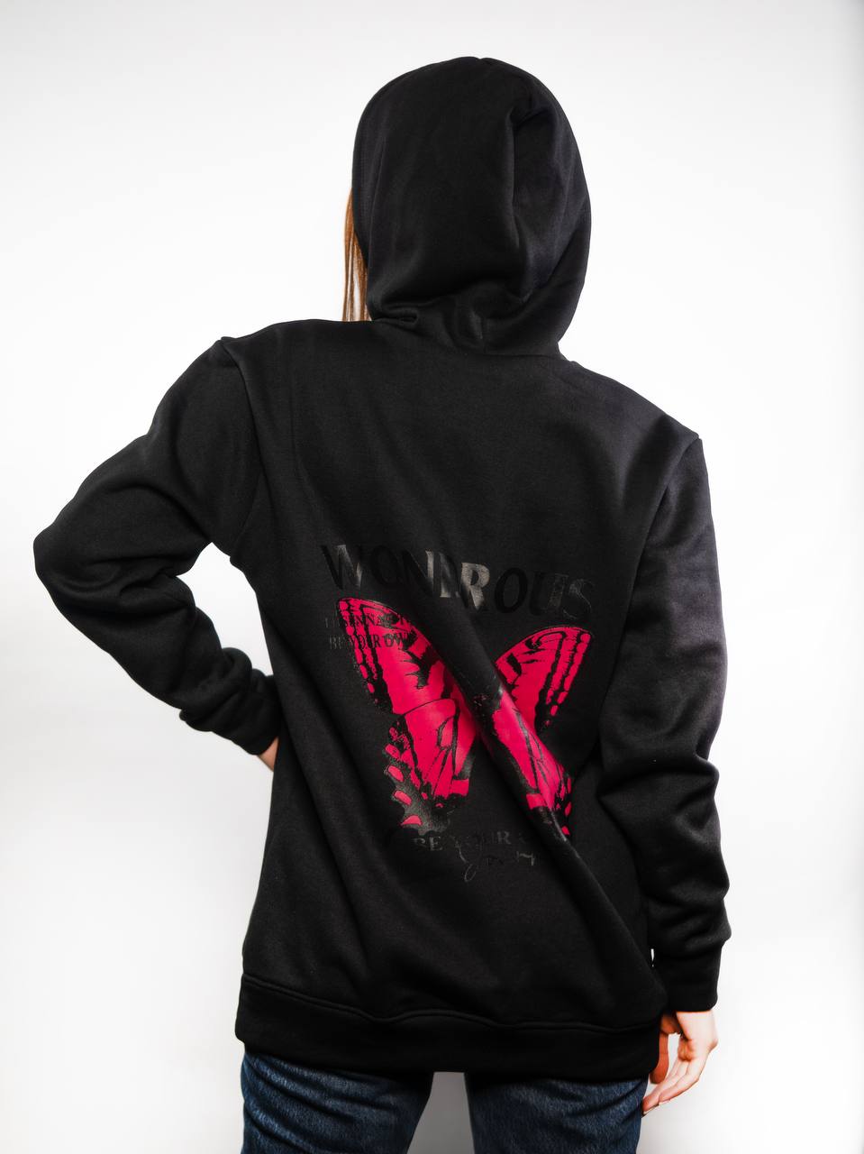 ✅ طراحی خاص با چاپ پروانه صورتی روی پشت هودی