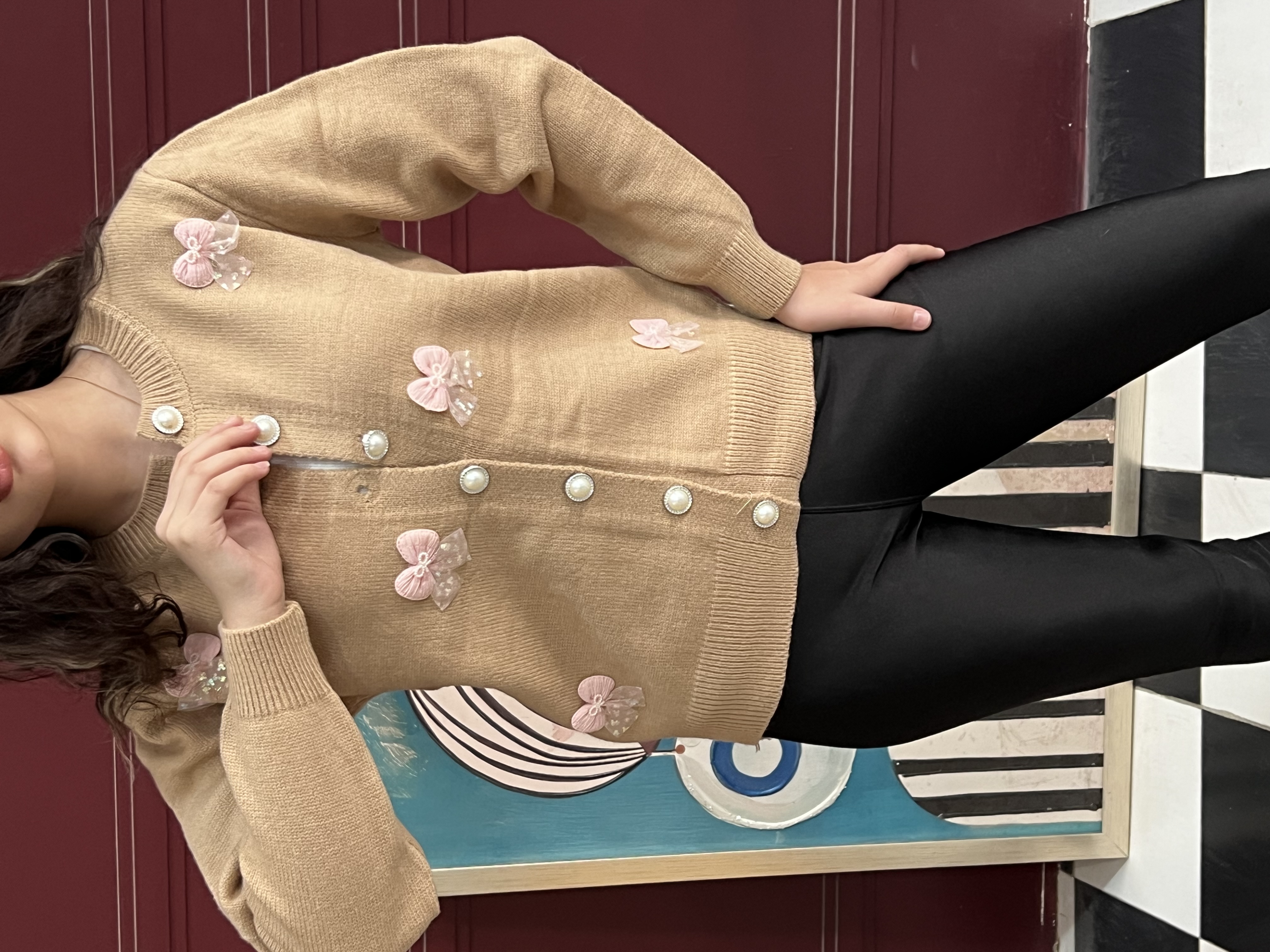 کاردیگان مدل پاپیون یک انتخاب شیک و زنانه برای فصلهای سرد است. این کاردیگان وارداتی با بافت نرم و الیاف باکیفیت تولید شده و طراحی ظریف پاپیونهای پارچهای و دکمههای مرواریدی، آن را به یک گزینهی متفاوت و جذاب برای استایلهای روزمره و خاص تبدیل کرده است.